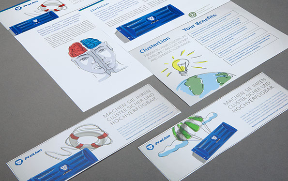 Diverse Werbemittel, Factsheets und Inserate für die Marke ProLion mit eigenen Illustrationen im „Scribble“-Look.