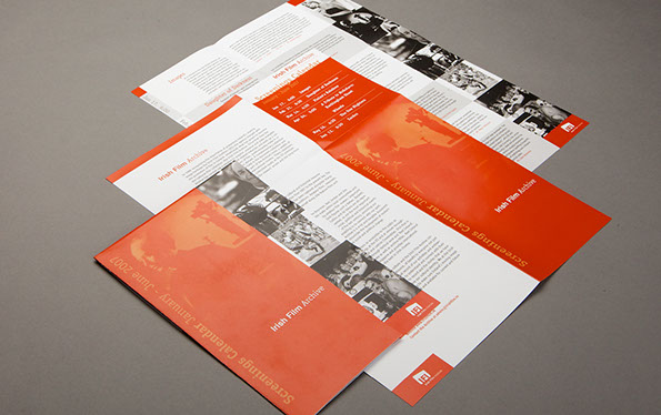 „Irish Film Archive“ Kunstkino in Dublin: monatliches Kinoprogramm in einer cleveren Faltung, deren Format hohe Wiedererkennung hat.