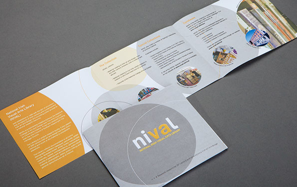 Werbebroschüre der „National Irish Visual Arts Library“ (NIVAL), die sich besonders an Schüler und Studenten richtet.